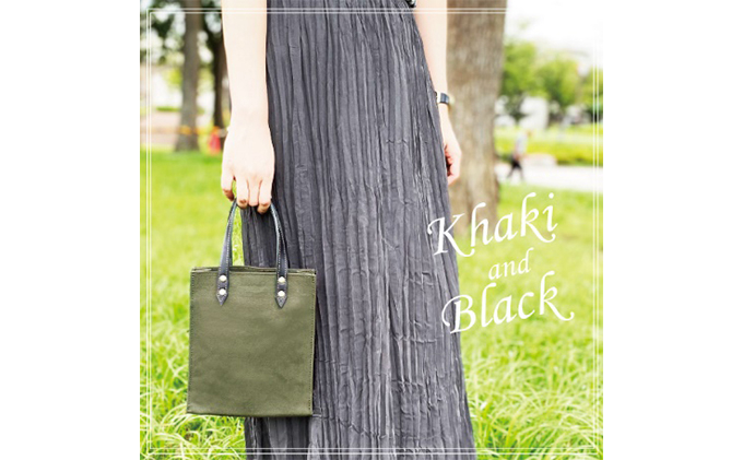 - 倉敷産帆布×本牛革 トートバッグミニサイズ(カーキ×黒)◇