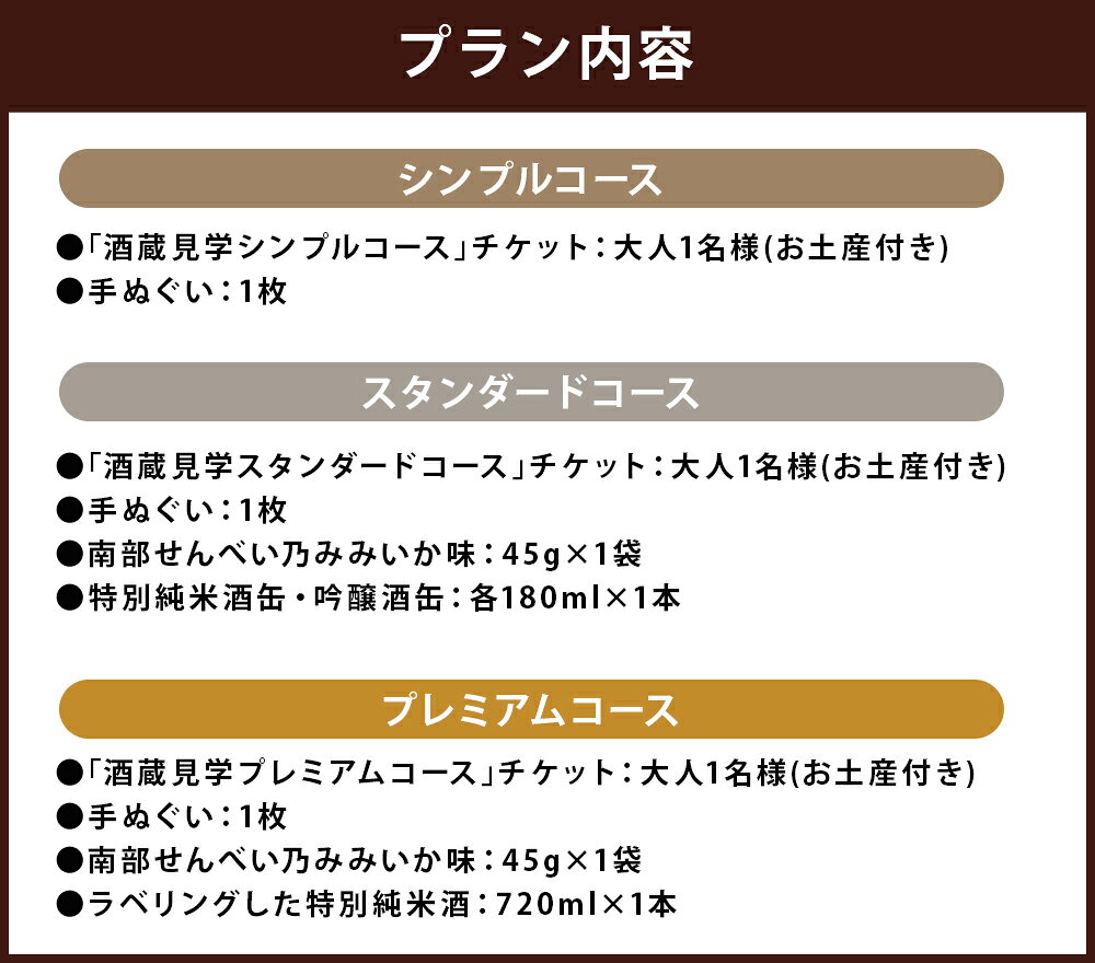 - 【ふるさと納税】【10月~3月冬季限定】南部美人 酒蔵見学チケット 1名様 選べるコース シンプル/スタンダード/プレミアム お土産付き 酒造見学 チケット 旅行 体験 二戸市 岩手県 チケット 送料無料
