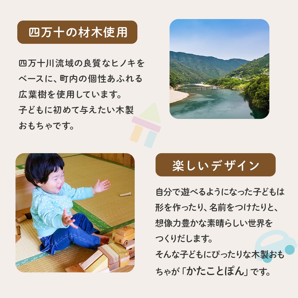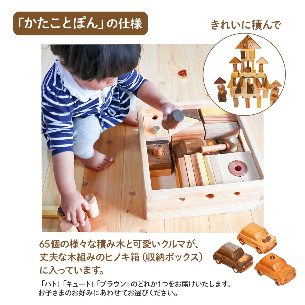 【四万十産の木材13種、つみきの数65個】遊び方から片付けまで自由な発想を育む、積み木 「かたことぽん」 Ole-29 /つみき かわいい プレゼント ギフト 御祝 こども 乳幼児 車 くるま 知育玩具 木工おもちゃ ひのき 桧 木製 釘不使用 四万十 しまんと 国産