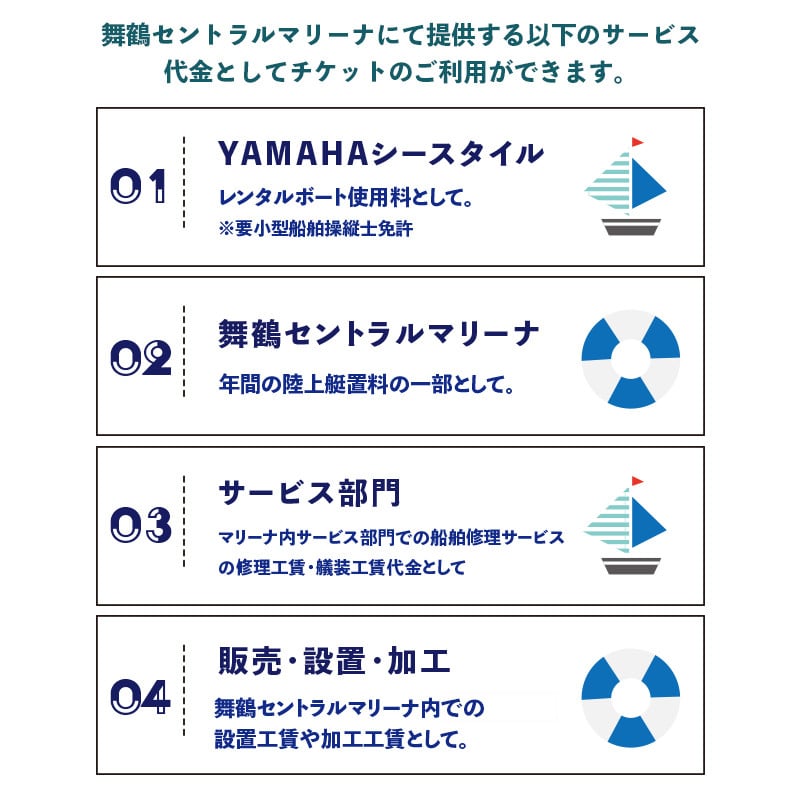 - 舞鶴セントラルマリーナ 利用券 30,000円分 レンタルボート 陸上艇置料 船舶修理サービス 修理 艤装 設置 加工 施設利用 チケット 体験型
