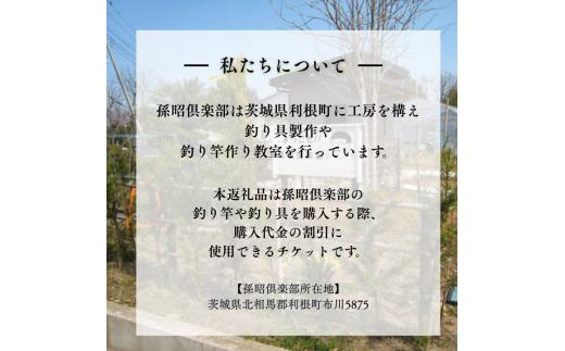 孫昭倶楽部 釣り竿・釣り具の購入補助券 1万円分 / 釣り具 釣具 釣り竿 釣竿 へら竿 竿受 玉の柄 万力 浮子入れ ハリス掛け 合成竿