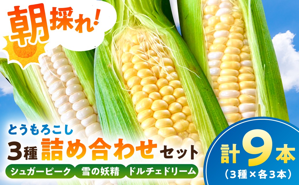 - 【千葉県産】朝採れとうもろこし3種詰め合わせセット(3種×各3本 計9本) mi0113-0003 【野菜 旬 食べ比べ 詰め合わせ 高糖度 生食可】