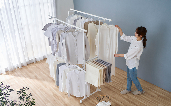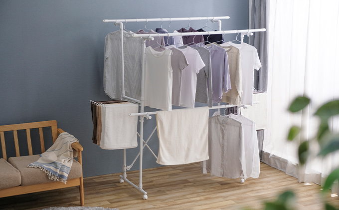 組み立て簡単たっぷりスタイル物干しKTM-2018STホワイト 室内 室内干し アイリスオーヤマ