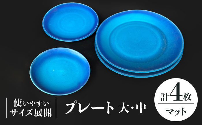 - 【美濃焼】 プレート 大 ・ 中 各2 計4点 (マット)【東山窯】 [TDU014]