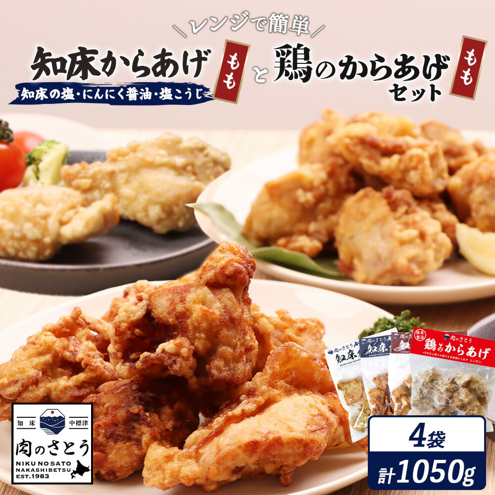 【ふるさと納税】【レンジで簡単】知床からあげ【知床の塩・にんにく醤油・塩こうじ】もも肉と鶏のからあげ1050gセット | 唐揚げ 全4種 知床 塩 にんにく 醤油 麹 鶏 レンチン 冷凍食品 時短 ザンギ 惣菜 北海道 中標津町 中標津【35022】