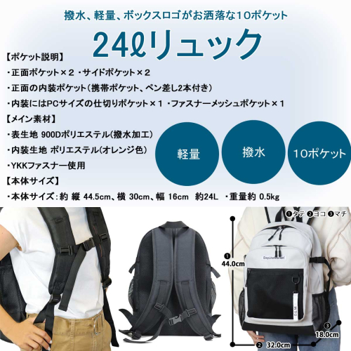 - 撥水、軽量、ポケット多数、ボックスロゴがお洒落な 10ポケット 24L チャコールグレー WZ013-4