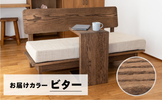 【ビター】ソファー 2人掛け・カフェテーブル付(長さ130cm 高さ 72cm 奥行 75cm 座面高さ 43cm) シンプル 机 テーブル ソファー 2人用 サイドテーブル 木目 楢 ナラ
