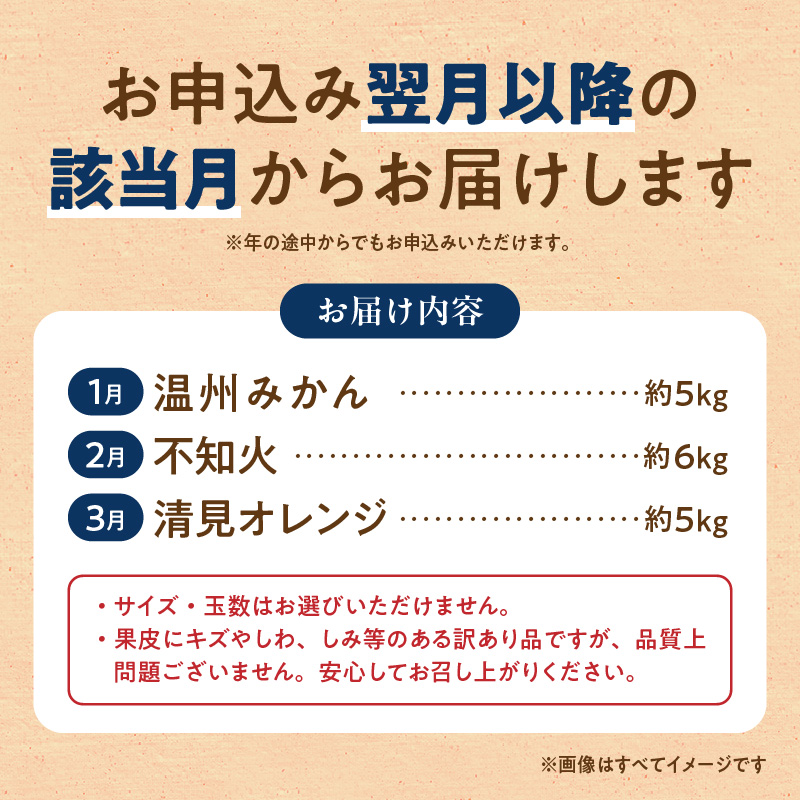 G60-T97_【発送月固定定期便】魚鶴自慢のご家庭用柑橘セット(みかん・不知火・清見)全3回