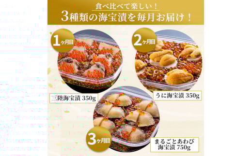 - fc-25-016 【定期便】 海宝漬 お楽しみ定期便 3ヶ月 中村家 三陸海宝漬 うに海宝漬 まるごとあわび海宝漬