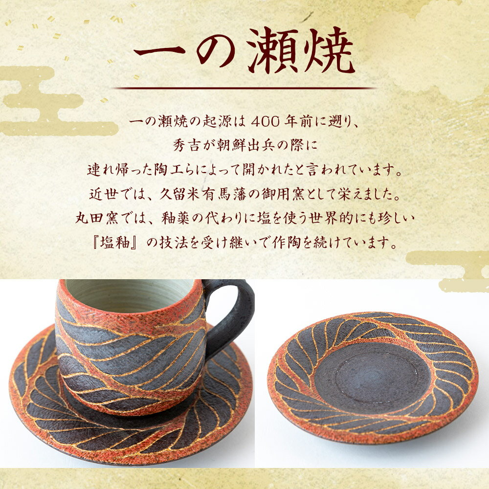 - 【ふるさと納税】丸田窯 焼締め針象嵌泥彩縄文様 珈琲碗皿 カップ コーヒーカップ ソーサー セット 焼き物 手作り 伝統 工芸 陶芸 送料無料 福岡県 うきは市