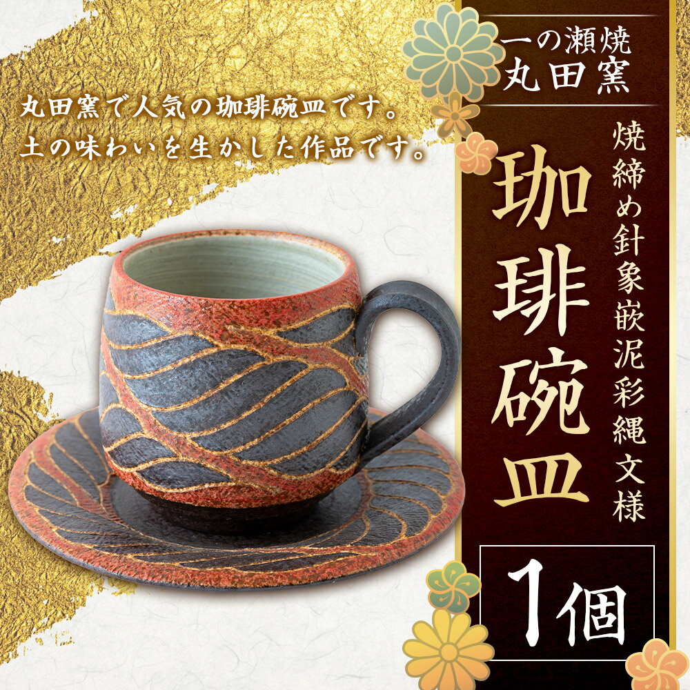 【ふるさと納税】丸田窯 焼締め針象嵌泥彩縄文様 珈琲碗皿 カップ コーヒーカップ ソーサー セット 焼き物 手作り 伝統 工芸 陶芸 送料無料 福岡県 うきは市