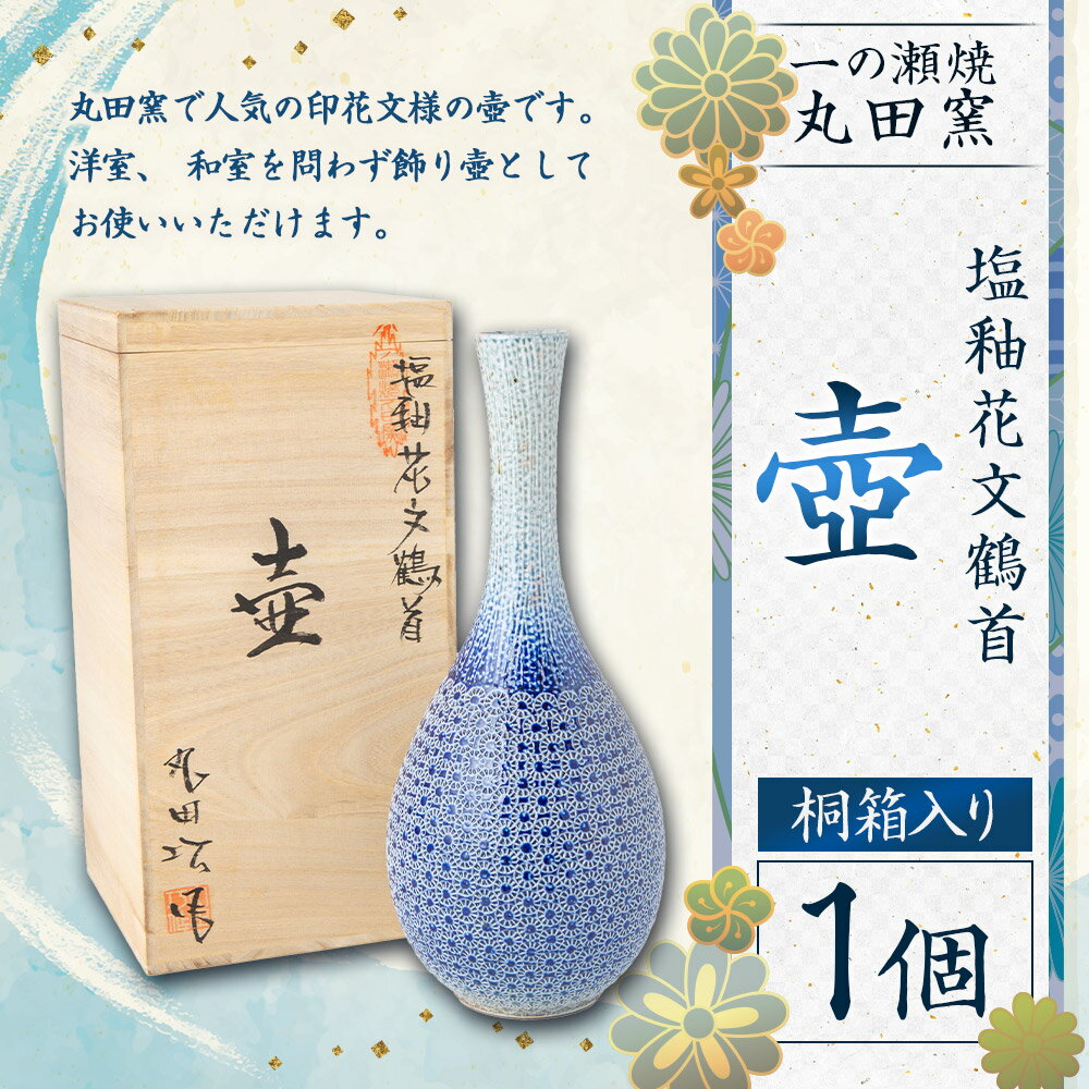 【ふるさと納税】丸田窯 塩釉 花文鶴首壺(高さ36cm 幅15cm) 印花文様 桐箱入り 骨董 つぼ 焼き物 飾り壺 手作り 高級壺 高級 伝統 工芸 陶芸 送料無料 福岡県 うきは市