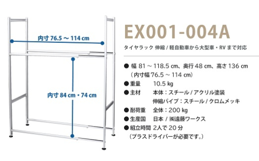 - タイヤラック 伸縮 大型 アジャスター付き EX001-004A FC082004