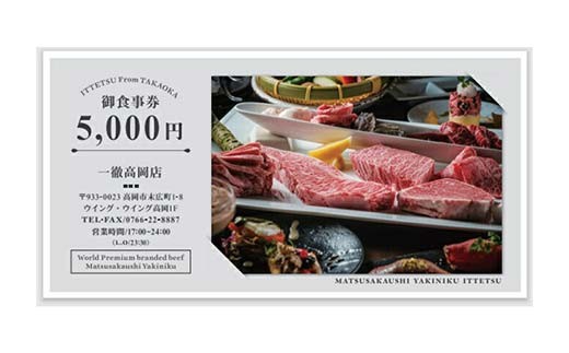 「松阪牛焼肉一徹」5,000円分 お食事券【富山県 高岡 焼き肉】[№5616-0985]