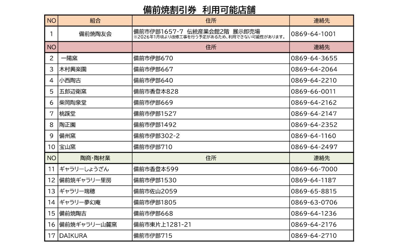 - 0050-I-015 ふるさと納税「備前焼」割引券
