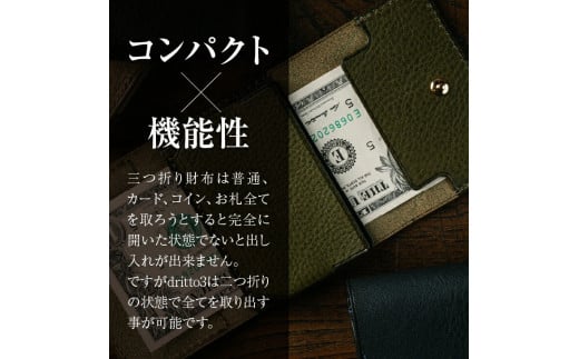 小さい三つ折りマネークリップ dritto 3 三つ折り財布 革製品 本革 牛革 オリーバ(緑系) [BJ002VC02]