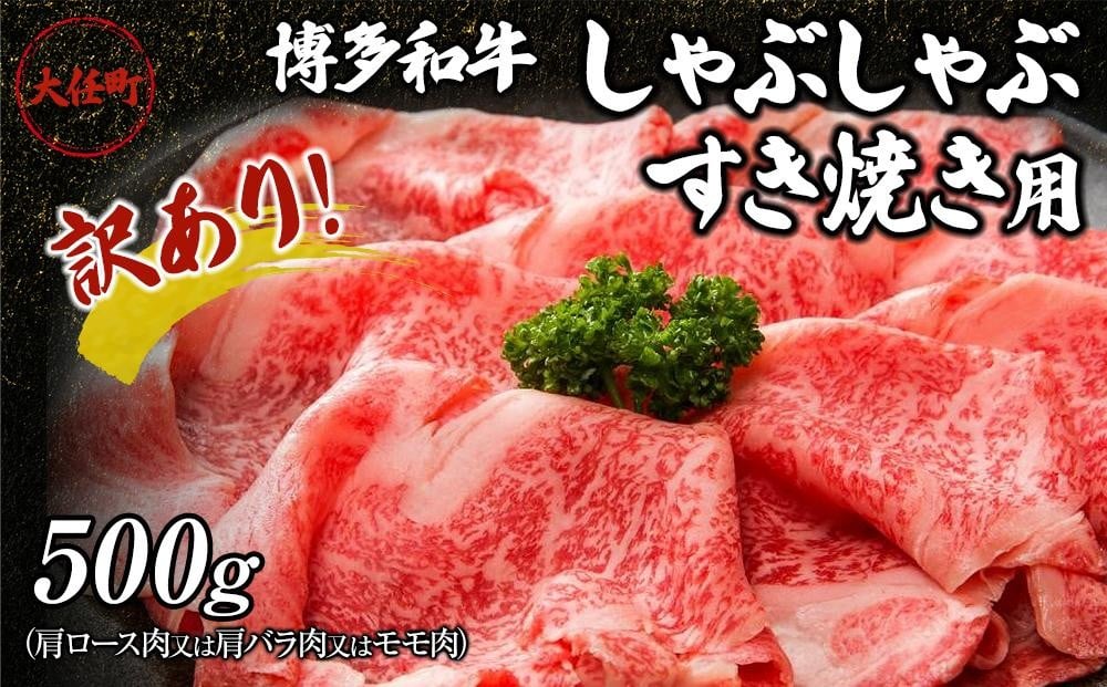 訳あり!博多和牛しゃぶしゃぶすき焼き用(肩ロース肉又は肩バラ肉又はモモ肉)500g