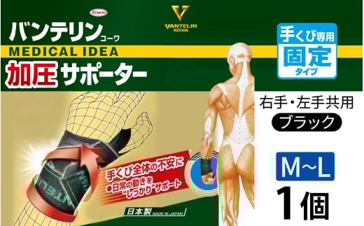 - バンテリンコーワ加圧サポーター 手くび専用 ふつう~大きめサイズ(M~L) ブラック 1個