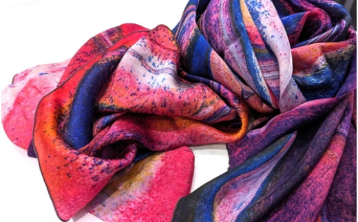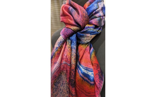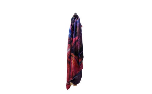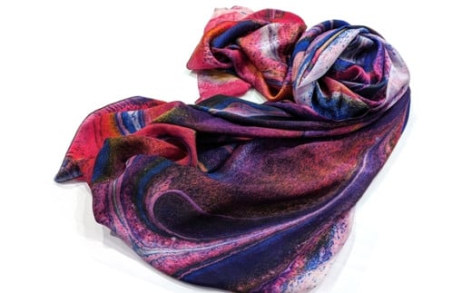 墨流し染 シルク ロングストール (マーブル模様) / 染美堂 一点物 絹 現代風 アート サテン織 贈り物 上品 奈良県 葛城市