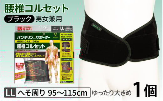 バンテリンコーワサポーター 腰椎コルセット ゆったり大きめサイズ(LL) ブラック 1個