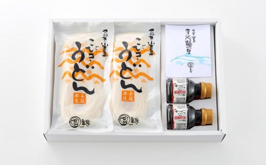 - 【ギフト用】手延べ半生こびきうどん 6袋入り だし醤油(麺つゆ)セット(贈答用・熨斗つき)