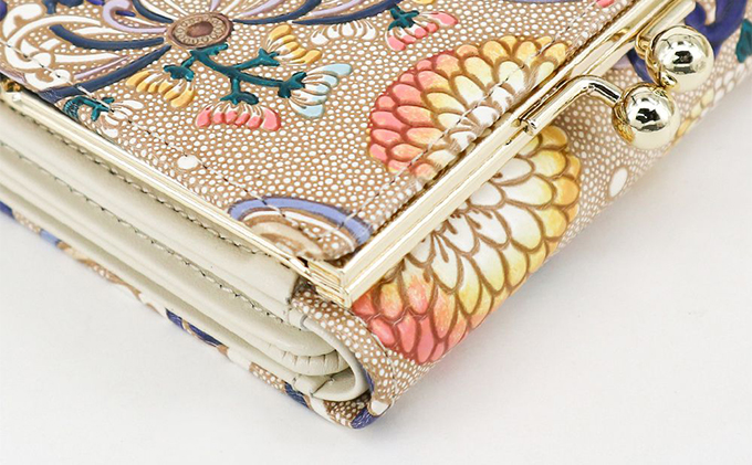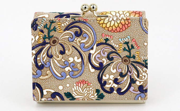 - 【文庫屋大関】三つ折りミニ財布 乱菊(青紫)【皮革工芸品】 ファッション 小物 民芸品 お札 カード 小銭 手のひらサイズ コンパクト 大人かわいい 牛革 手作り 国産