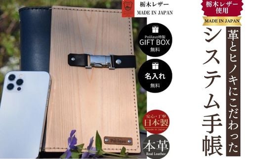 - 【選べる8色】システム手帳 革とヒノキ A5 栃木レザー 名入れ 対応可 8色 ギフトBOX お祝いプレゼント 贈り物 革
