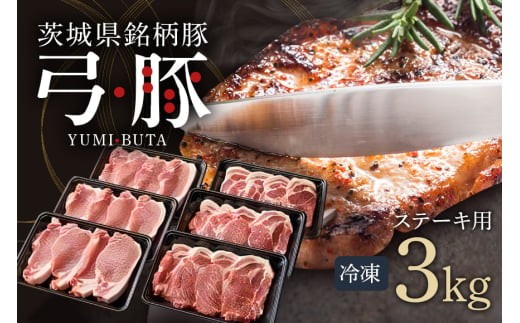 - 弓豚 ステーキ セット 3kg 豚肉 和豚 銘柄豚 肉 ロース カタロース ステーキ用 国産 高品質 希少 産地直送 ヘルシー 家庭用 ギフト 冷凍 (C01-015)