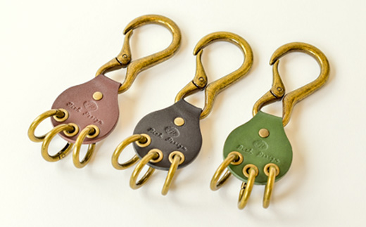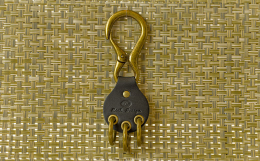 - <ハンドメイド>レザーキーホルダー スリーホールカラビナ(ブラック)【1474539】
