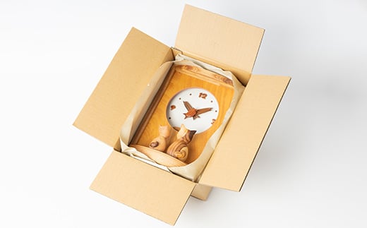 - <振り子時計>ウッディいるまの猫と魚の時計(四角)<ハンドメイド>【1454480】