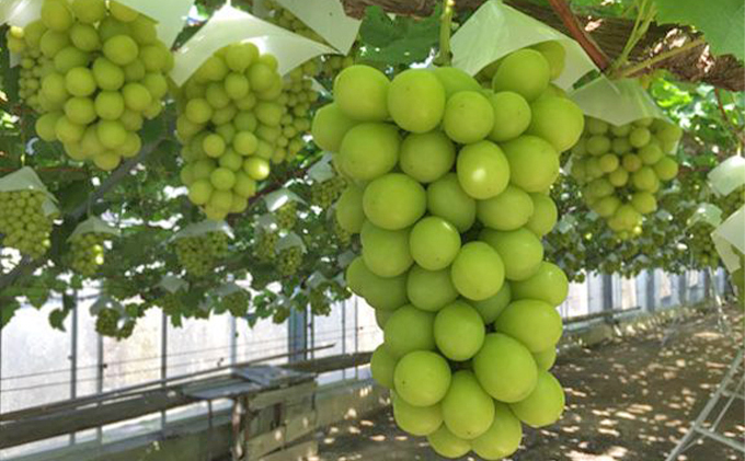 - 越冬 ぶどう シャイン マスカット 1房 約600g 岡山県産 四代目 五果苑 果物 フルーツ デザート 樹上 完熟 平均糖度20度 減農薬 種なし 皮ごと
