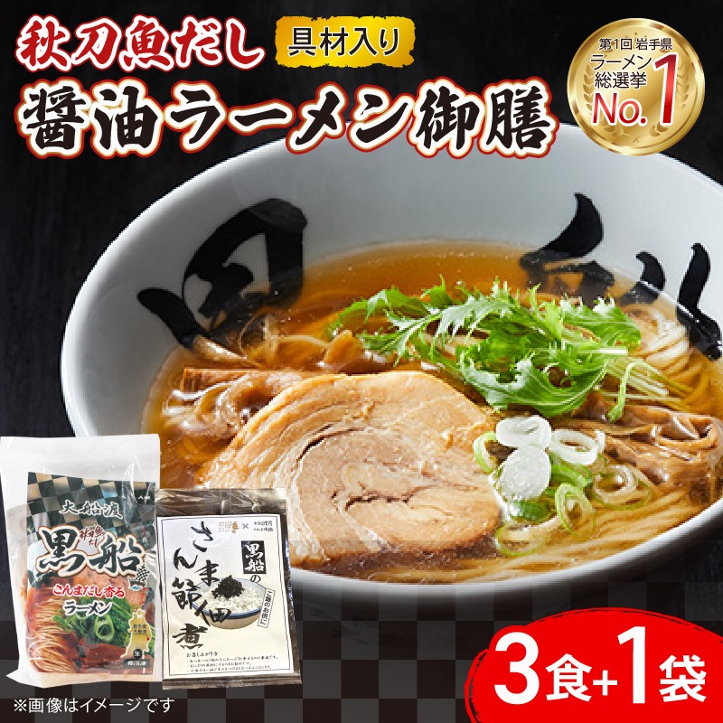 - 秋刀魚だし 醤油ラーメン 御前 ラーメン3食 + 佃煮1袋 [kurofune21]
