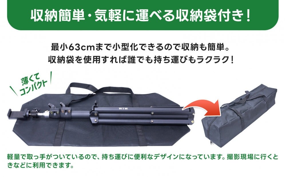 - 伸縮・自由な角度調節が可能なカメラ・スマホ三脚+スマートフォンホルダーWTW-BR2345PH【1423567】