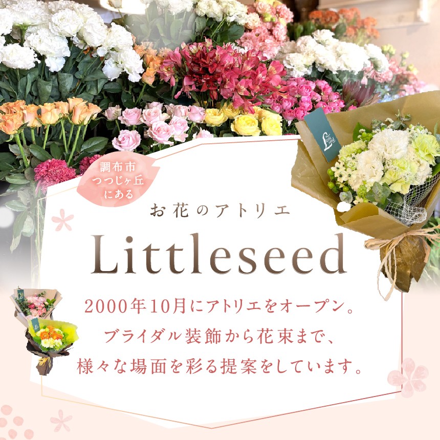 フラワー アレンジ 「Large」 お楽しみ 季節 の アレンジメント | アレンジ タイプ 高さ約42cm 幅約40cm お花 flower フラワー ふらわー 花 はな リトルシード インテリア 植物 お任せ お見舞い ギフト お祝い 誕生日 親孝行 プレゼント贈り物 新鮮 調布 東京都