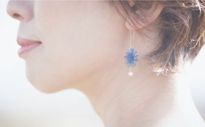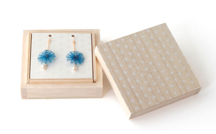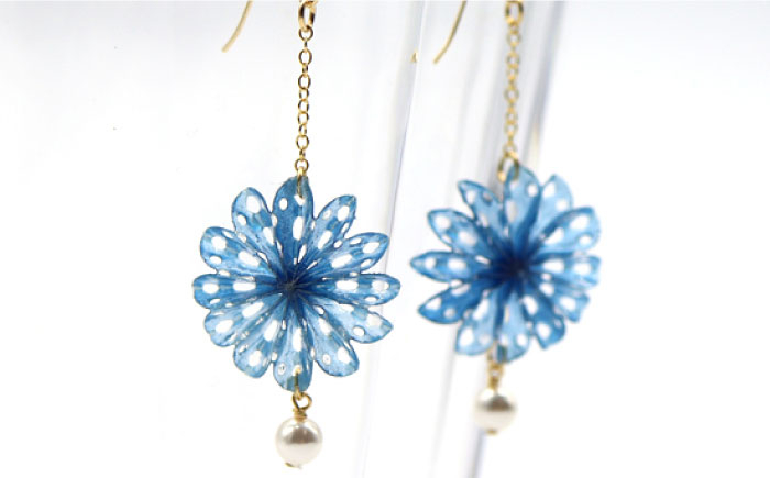 - (P)mk05-021 水くるま 郡上藍染 パール ピアス ガラスビーズ ゴールドフィルド 美濃和紙