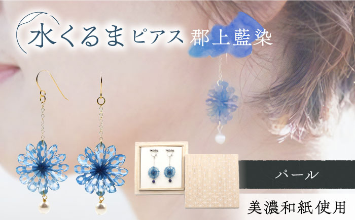 (P)mk05-021 水くるま 郡上藍染 パール ピアス ガラスビーズ ゴールドフィルド 美濃和紙