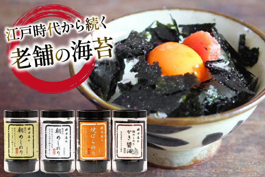 - 【ふるさと納税】朝めしのり(味付)(かき醤油)(焼のり)・焼ばらのり 10本セット [横田屋本店 宮城県 気仙沼市 20565091] 海藻 乾物 海苔 のり ノリ 焼き海苔 味付け海苔
