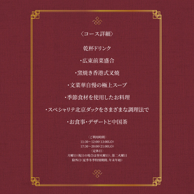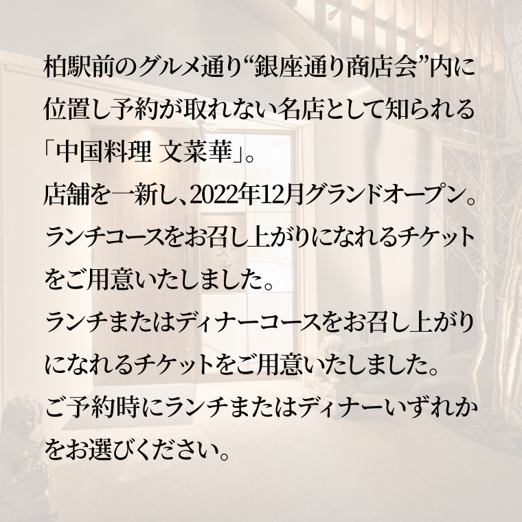 - 乾杯付文菜華ランチ/ディナーコースチケット