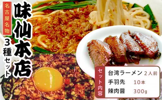 - 味仙本店の台湾ラーメン・手羽先・辣肉醤の3種セット