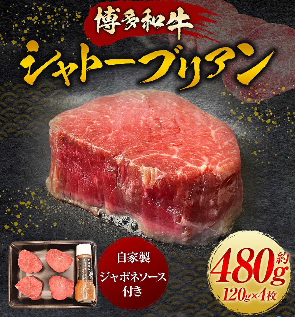 - 【ふるさと納税】 【博多和牛】シャトーブリアン 120g×4枚 (自家製 ジャポネソース付) 肉 お肉 希少部位 牛ヒレ肉 ステーキ肉 高級 赤身 和牛ステーキ 牛肉 冷凍 送料無料 福岡県 うきは市
