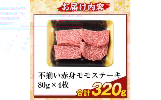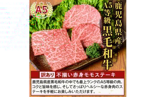 - K-478-A <訳あり>鹿児島県産A5等級黒毛和牛不揃い赤身モモステーキ(計320g) 【ふるさと産直バザール】霧島市 牛肉 国産 鹿児島県産 赤身肉 不揃い ワケアリ もも ステーキ 肉 精肉