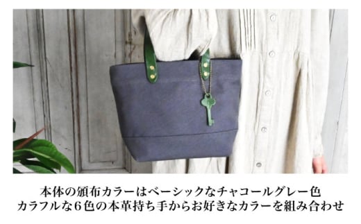 - 帆布 トートバッグ Sサイズ チャコールグレー×選べる本革持ち手6色 フィーユ(緑色) 滋賀県長浜市/株式会社ブラン・クチュール [AQAY210] 帆布 トート トートバッグ ミニトート ファスナー付