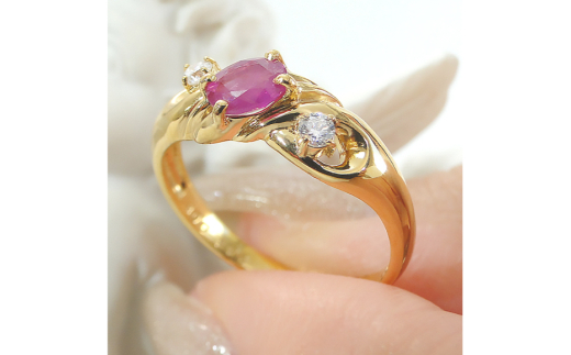 - 指輪 K18YG イエローゴールド オーバル 天然ルビー 5~16号 ダイヤモンド 0.08ct 結び目 リボン ツイストリング【f228-k18yg-ru】 [株式会社オーダーメイドジュエリーメイ 山梨県 韮崎市 20742654-d] リング アクセサリー ジュエリー アクセ