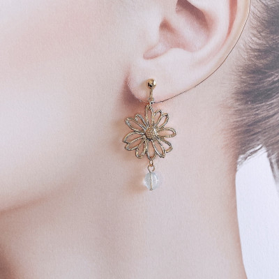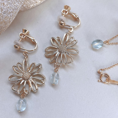 - ハンドメイド誕生石のイヤリング&ネックレス(アクアマリン) おまかせデザイン2点SET