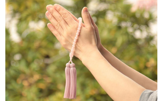 - 【京念珠】数珠 ローズクォーツ 正絹頭房【土屋念珠店/女性用/レディース/念珠/略式/3893】