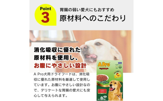 A Pro 犬用 ドライフード(チキン)8kg×2袋_A Pro 犬用 ドライフード 8kg × 2袋 チキン オールステージ用 総合栄養食 愛犬 健康維持 サポート 免疫力 保つ 小粒タイプ 犬 小型犬 シニア犬 食べやすい ドッグフード 福岡県 久留米市_Pf038-02
