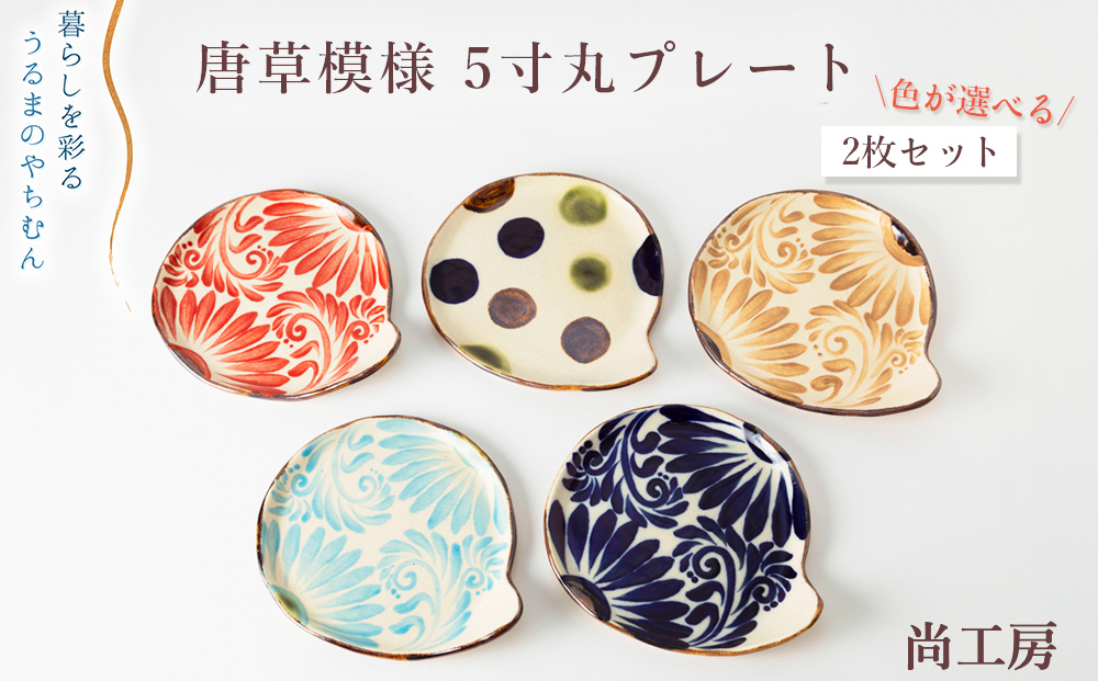 <色が選べる!> 唐草模様 5寸丸プレート 2枚セット【尚工房】