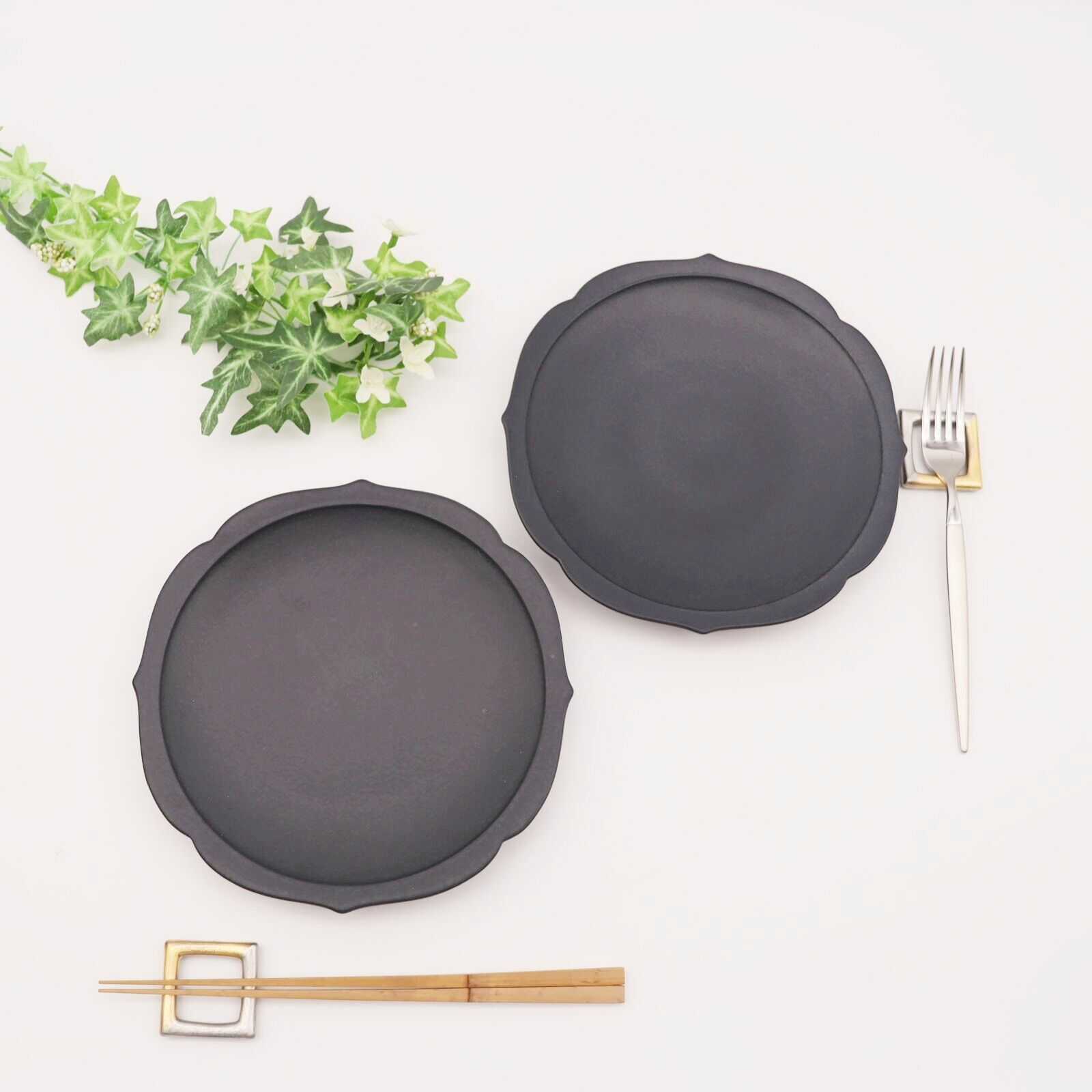 - 【ふるさと納税】【家計お助け返礼品】【有田焼】黒マット輪花桔梗渕6.5寸皿+角リング箸置き(各2点セット) / 有田焼 皿 箸置き / 佐賀県 / 株式会社深海三龍堂 [41APAD027]