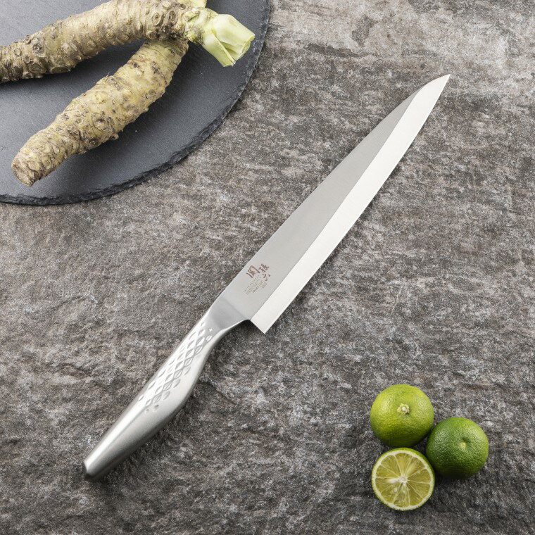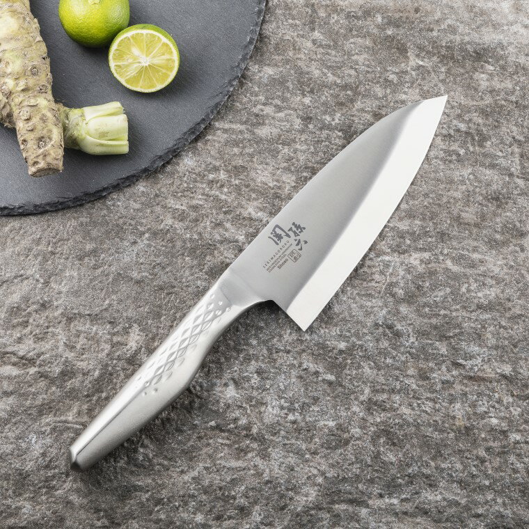 【ふるさと納税】<関孫六最高峰シリーズ・両刃付>関孫六 要 切付包丁 6寸半 195mm ~三徳包丁 万能包丁 包丁 両刃 ステンレス 剣型の刃先 機能性 鳥居反り ハンドル 八角柄 美しいデザイン パッケージ 特殊ステンレス刃物鋼 関市 ギフト ブランド 職人技~ 高級