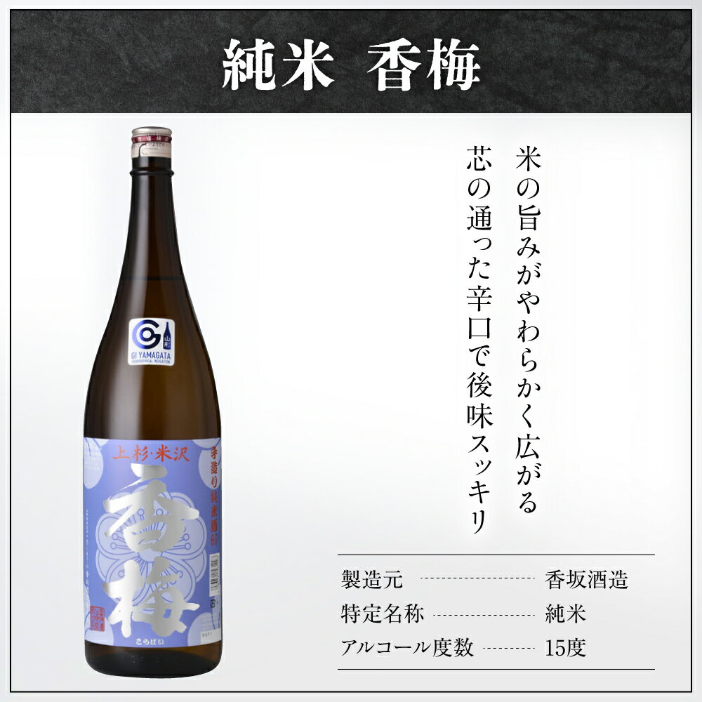 - 【ふるさと納税】 米沢 地酒 香梅 一升瓶 セット 1.8L × 2本 純米吟醸 純米 日本酒 純米酒 老舗蔵元 さっぱり 辛口 晩酌 地酒 山形県 米沢市